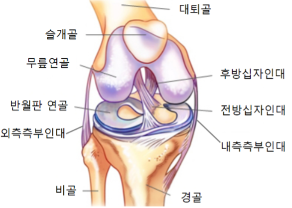 그러나 무릎은 상당히 불안정한 구조이기 때문에 특수하게 2개의 십자인대 (전방, 후방)가 관절 안에 존재합니다. 관절 안에 있는 인대가 파열되게 되면 재생능력이 급격히 떨어지게 되는데요 그 이유는 관절액의 존재 때문입니다.