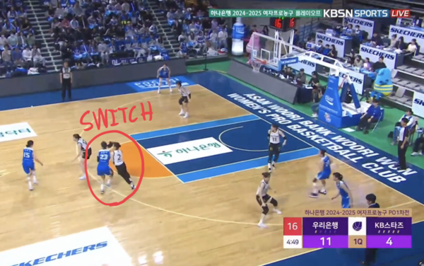 1) 김단비가 포함된 우리은행의 2대2에 대해서는 우선적으로 스위치를 한다.