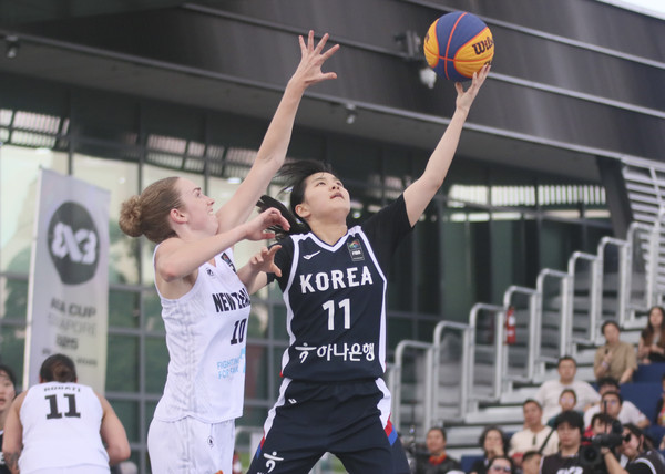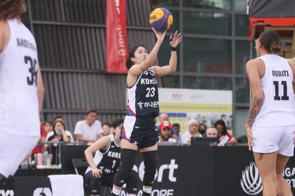 28일 싱가포르 OCBC 광장 특설코트에서 열린 FIBA 3x3 아시아컵 2025 메인 드로우 A조 예선에서 완벽한 게임 플랜을 보여준 여자 3x3 대표팀이 우승후보 뉴질랜드를 18-9로 대파하는 이번 대회 최대 이변을 일으켰다.