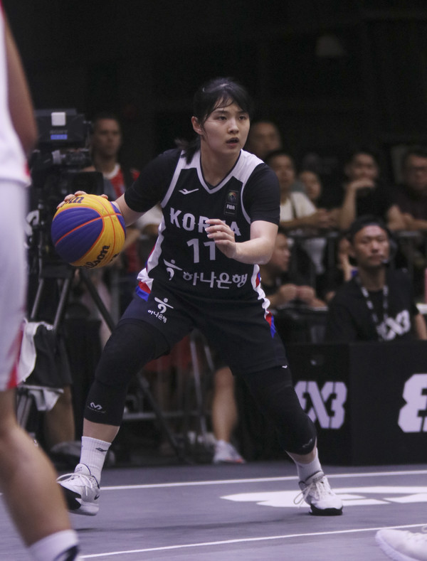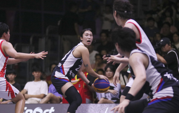 28일 싱가포르 OCBC 광장 특설코트에서 열린 FIBA 3x3 아시아컵 2025 메인 드로우 A조 예선에서 중국을 상대한 여자 3x3 대표팀(이하 대표팀)이 중국의 거센 공세를 12-19로 잘 막아내며 조 2위로 8강 진출을 확정했다. 대표팀으로선 경기 막판 터진 허유정(7점, 2점슛 2개)의 2점슛이 8강 진출의 열쇠가 됐다.