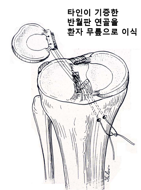 반월연골판 이식술은 반월연골판 기능이 거의 없어진 사람들에게 사체의 건강한 반월연골판을 이식하는 수술입니다. 반월연골판은 한번 제거하거나 닳아 없어지게 되면 재생이 되는 조직이 아닙니다. 그렇기 때문에 봉합술이 잘 안되었거나 파열 양상이 좋지 않아 상당 부분 제거하고 난 후, 반월연골판 기능이 완전히 없어져 관절연골의 손상이나 관절염이 진행될 때, 반월연골판 이식술을 고려합니다.