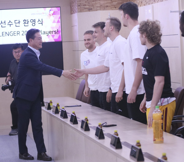 지난 7일, 홍천군청을 찾은 체코, 독일 선수단은 신영재 홍천군수, 신은섭 홍천군체육회, 신재영 홍천군체육회부회장을 만나 차담회를 진행했다.