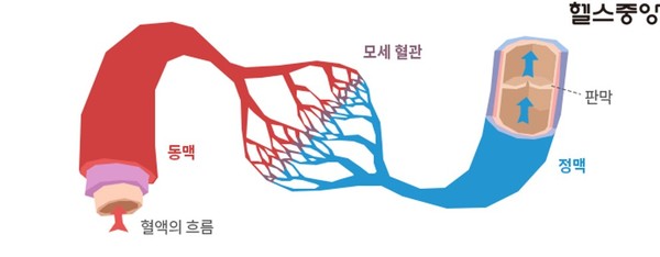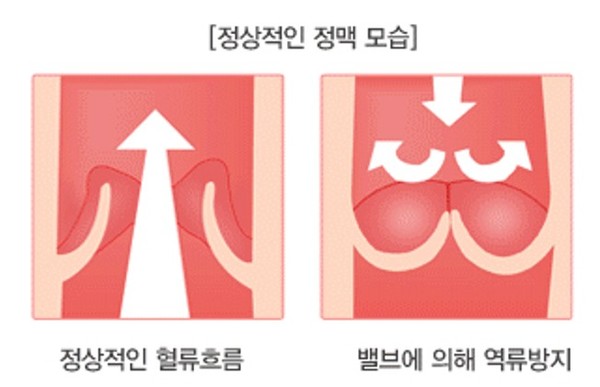 하지만 여기서 궁금증이 생깁니다. 근육이 정맥을 누르면 혈액이 심장 쪽으로만 흐르지 않고 역류하지는 않을까? 다행히 정맥 안에는 혈류의 역류를 방지하는 판막이 있어서 혈액이 심장 방향으로만 순환하게 됩니다.