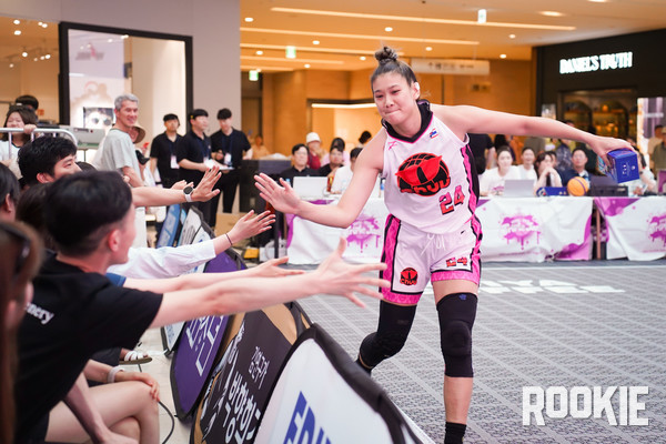 21일 스타필드 고양점에서 '2025 하나은행 WKBL 3x3 트리플잼(Triple Jam)' 2차 대회가 열렸다. 츄 수파바디 쿤찬이 팬과 하이파이브하고 있다.