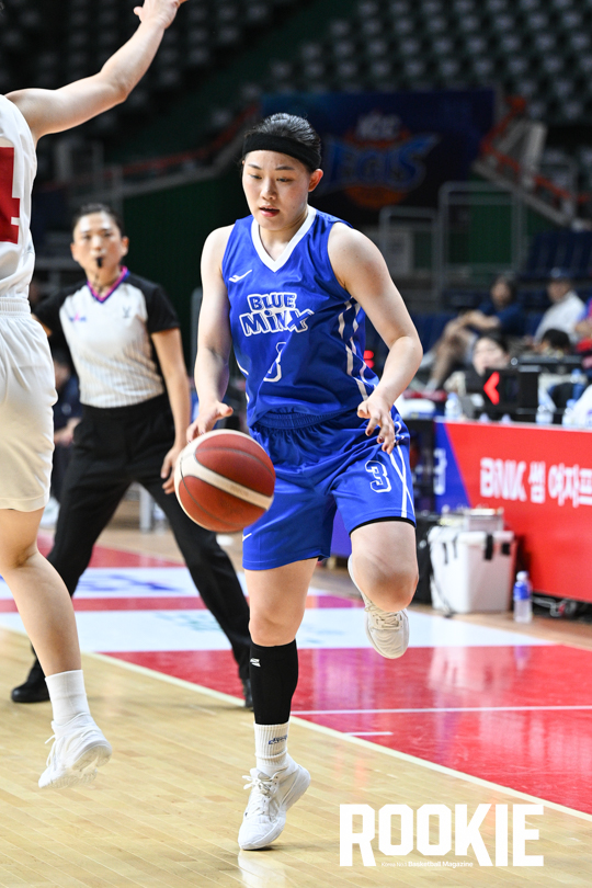 2일 부산에 위치한 사직실내체육관에서 ‘2025 티켓링크 WKBL 퓨처스리그’ 삼성생명과 JUBF의 경기가 열렸다. 삼성 조수아 수비를 제치고 공격을 하고 있다.