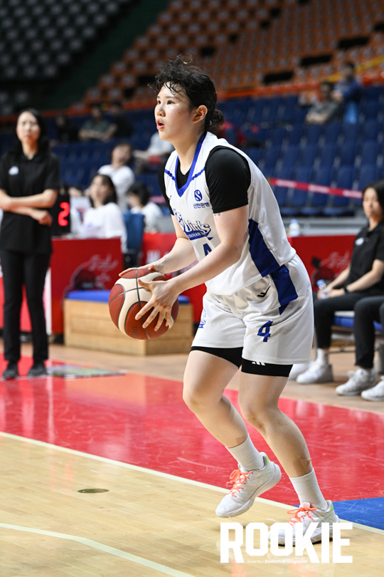 2일 부산에 위치한 사직실내체육관에서 ‘2025 티켓링크 WKBL 퓨처스리그’ 인천 신한은행과 몽골의 경기가 열렸다. 신한 이혜미가 공격을 주도하고 있다.
