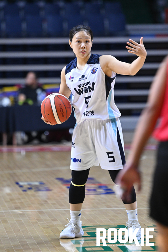 3일 부산에 위치한 사직실내체육관에서 ‘2025 티켓링크 WKBL 퓨처스리그’ 아산 우리은행 싱가포르의 경기가 열렸다. 우리은행 심성영이 작전을 지시하고 있다.