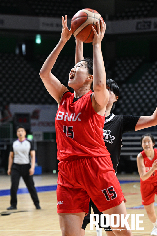 3일 부산에 위치한 사직실내체육관에서 ‘2025 티켓링크 WKBL 퓨처스리그’ 부산 BNK썸과 용인 삼성생명의 경기가 열렸다. BNK썸 박성진이 골밑 공격을 시도하고 있다.
