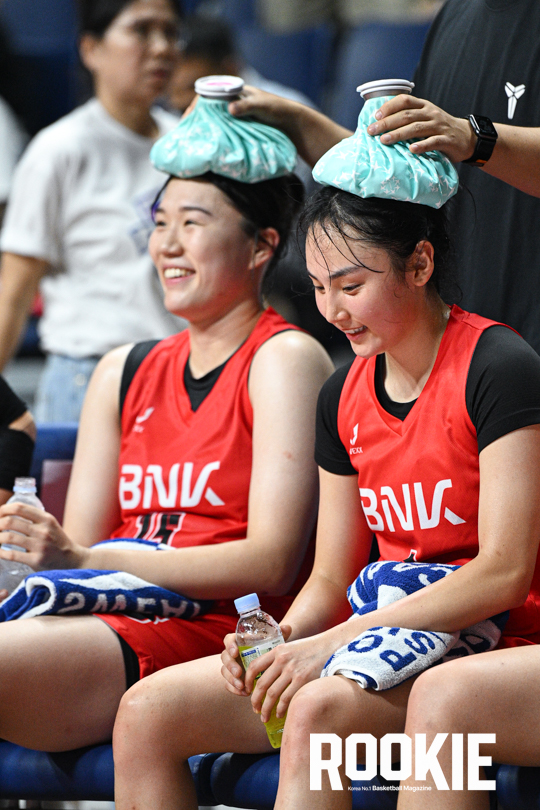 3일 부산에 위치한 사직실내체육관에서 ‘2025 티켓링크 WKBL 퓨처스리그’ 부산 BNK썸과 용인 삼성생명의 경기가 열렸다. BNK썸 박성진과 최서연에 벤치에서 열을 식히고 있다.