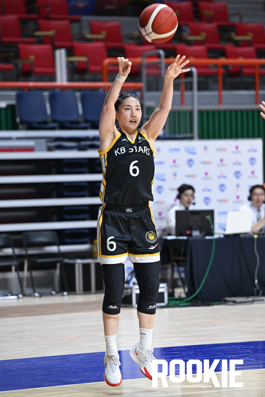 4일 부산에 위치한 사직실내체육관에서 ‘2025 티켓링크 WKBL 퓨처스리그’ 몽골과 청주 KB스타즈의 경기가 열렸다. KB스타즈 이윤미가 3점슛을 시도하고 있다.