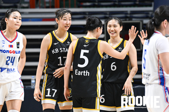 4일 부산에 위치한 사직실내체육관에서 ‘2025 티켓링크 WKBL 퓨처스리그’ 몽골과 청주 KB스타즈의 경기가 열렸다. KB스타즈가 97:49로 승리하였으며, 각각 28점을 기록한 이윤미와 고현지가 승리의 기쁨을 나누고 있다.