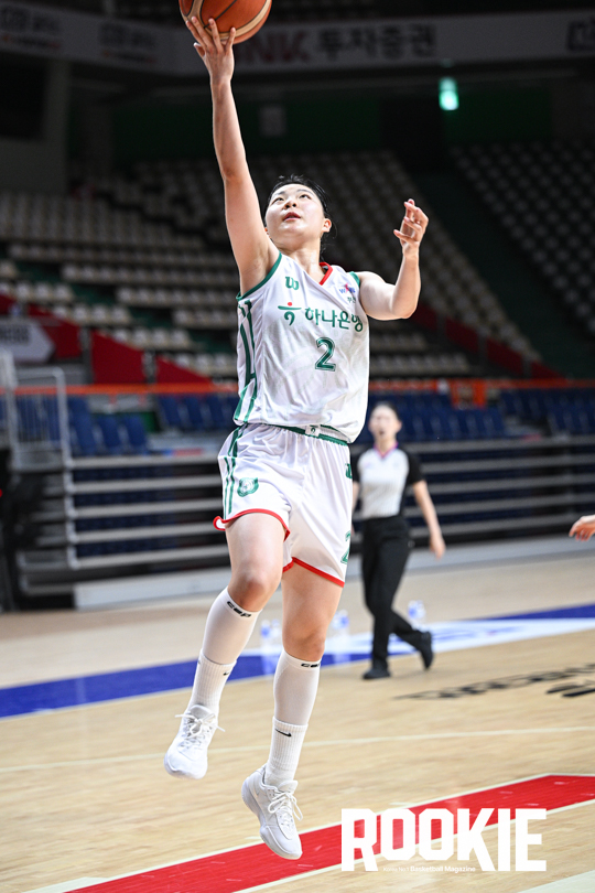5일 부산에 위치한 사직실내체육관에서 ‘2025 티켓링크 WKBL 퓨처스리그’ 부천 하나은행과 인천 신한은행의 경기가 열렸다. 고서연이 골밑 공격을 시도하고 있다.