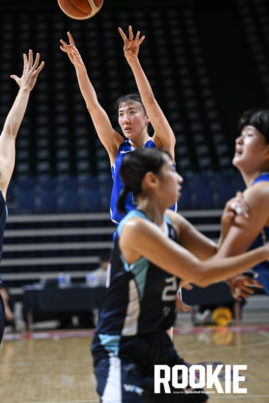 5일 부산에 위치한 사직실내체육관에서 ‘2025 티켓링크 WKBL 퓨처스리그’ 용인 삼성생명과 아산 우리은행의 경기가 열렸다. 삼성 임규리가 3점슛을 시도하고 있다.