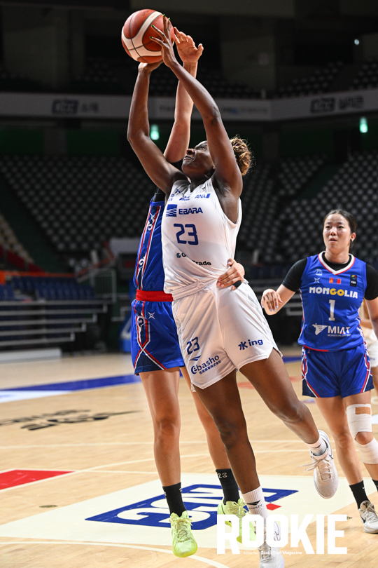 6일 부산에 위치한 사직실내체육관에서 ‘2025 티켓링크 WKBL 퓨처스리그’ 도쿄 하네다와 몽골의 경기가 열렸다. 하네다 치캄소가 슛을 시도하고 있다.