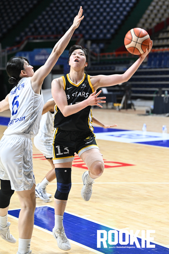 8일 부산에 위치한 사직실내체육관에서 ‘2025 티켓링크 WKBL 퓨처스리그’ 도쿄 하네다와 청주 KB스타즈의 경기가 열렸다. KB스타즈 노혜경이 레이업 슛을 시도하고 있다.