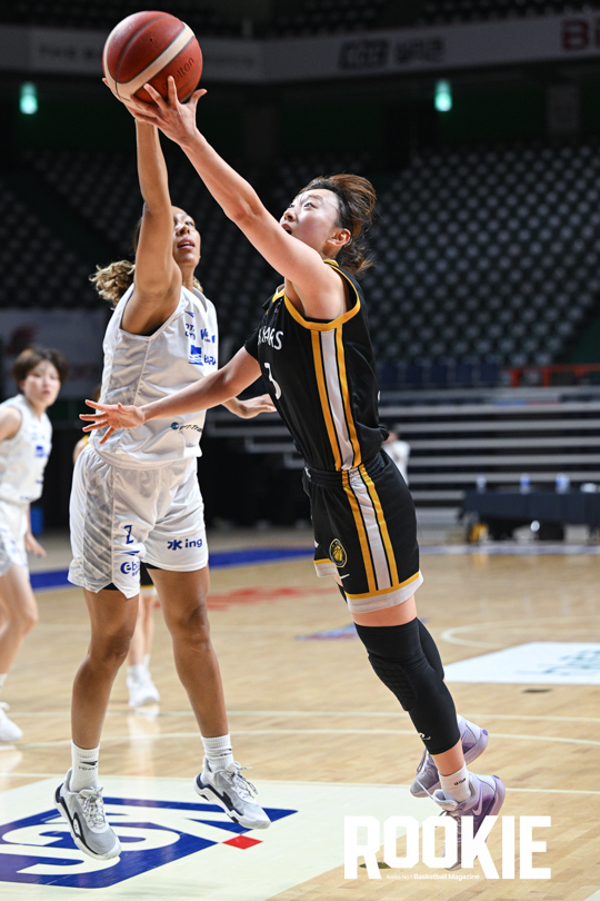 8일 부산에 위치한 사직실내체육관에서 ‘2025 티켓링크 WKBL 퓨처스리그’ 도쿄 하네다와 청주 KB스타즈의 경기가 열렸다. KB스타즈 이채은이 골밑 공격을 시도하고 있다.