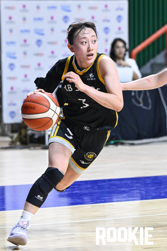 9일 부산에 위치한 사직실내체육관에서 ‘2025 티켓링크 WKBL 퓨처스리그’ JUBF와 청주 KB스타즈의 경기가 열렸다. KB스타즈 이채은이 골밑 돌파를 시도하고 있다.