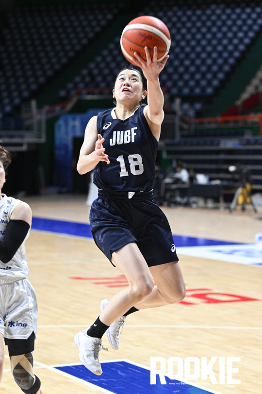 10일 부산에 위치한 사직실내체육관에서 ‘2025 티켓링크 WKBL 퓨처스리그’ 도쿄 하네다와 JUBF의 결승전 경기가 열렸다. JUBF 린이 골밑 공격을 시도하고 있다.
