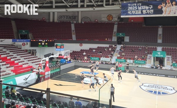 대한민국 유니버시아드 대학선발 대표팀 15일 안양 정관장 아레나에서 안양 정관장 레드부스터스와 연습경기를 치렀다.