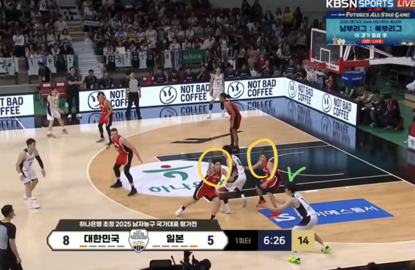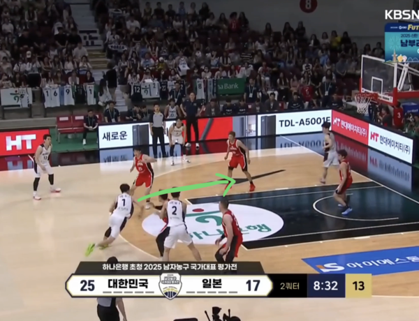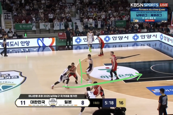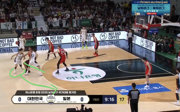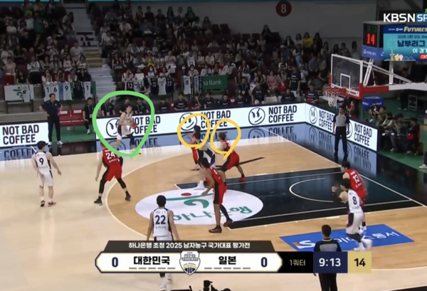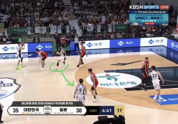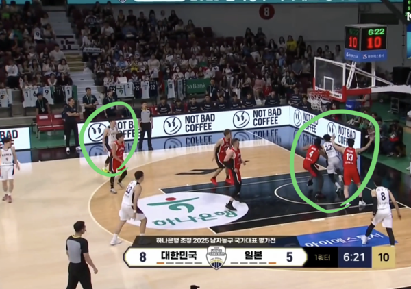 또 하나는 상대 스위치 수비를 뒤흔드는 효과다. 이번 일본 대표팀처럼 스위치 수비를 콘셉트로 가져가는 팀일수록, 고스트 액션의 효과는 더 커진다.