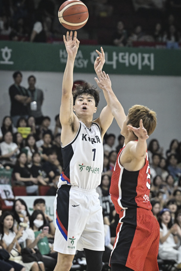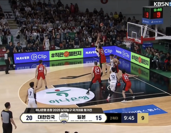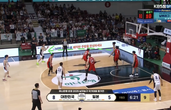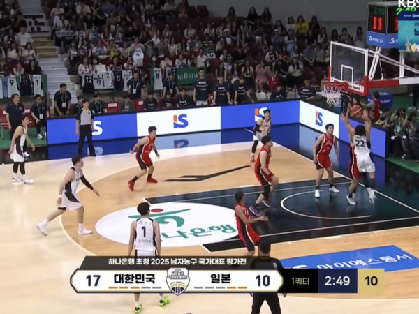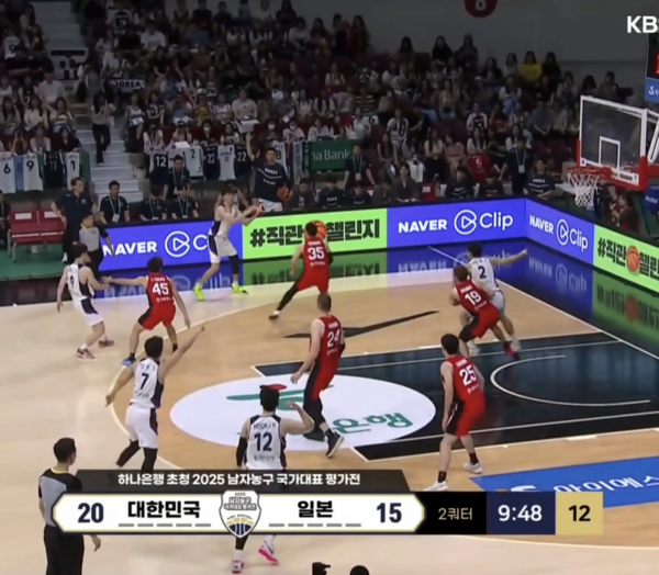 이현중의 드리블 돌파, 여준석의 웨이드컷을 막느라 페인트존으로 좁혀졌던 일본 수비 그물망이 뒤늦게 다시 펼쳐진다.