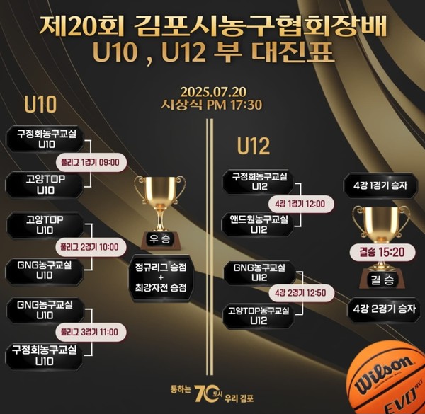 올해로 20돌을 맞은 김포시농구협회장배는 김포시를 넘어 전국에서도 알아주는 명문 생활체육 농구대회로 자리매김했다. 개최 종별 역시 유소년부(U10, U12, U15부)와 클럽부, 시니어부(40대부) 등으로 세분화돼 운영된다.