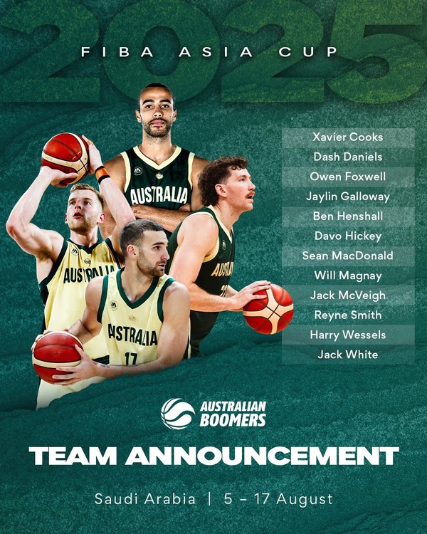 호주 남자농구 대표팀은 30일(이하 한국시간) 오는 8월 초 사우디아라비아 제다에서 개막할 2025 FIBA 남자농구 월드컵 최종 엔트리 12인을 공개했다.