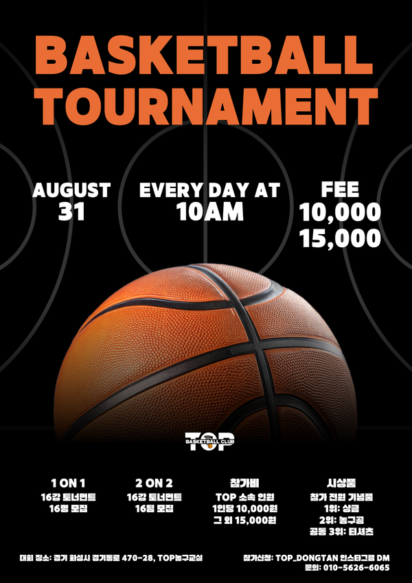 이번 대회는 화성시농구협회도 힘을 보탤 예정으로 참가 신청은 동탄 TOP 농구교실 인스타그램 계정(@top_dongtan) DM을 통해 가능하다.