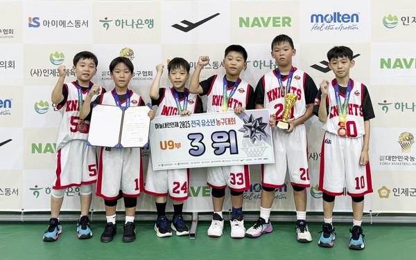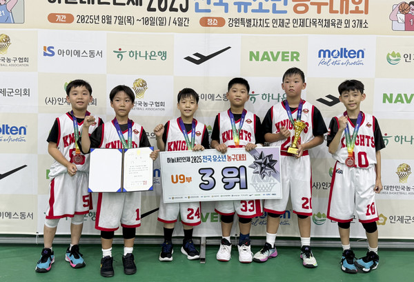 강남 SK(SK주니어나이츠 강남1지점&서초점)는 지난 7일부터 10일까지 강원도 인제군에서 개최된 2025 하늘내린인제 전국 유소년 농구대회 U9부에 출전해 강팀들을 꺾고 3위에 오르는 저력을 보여줬다.