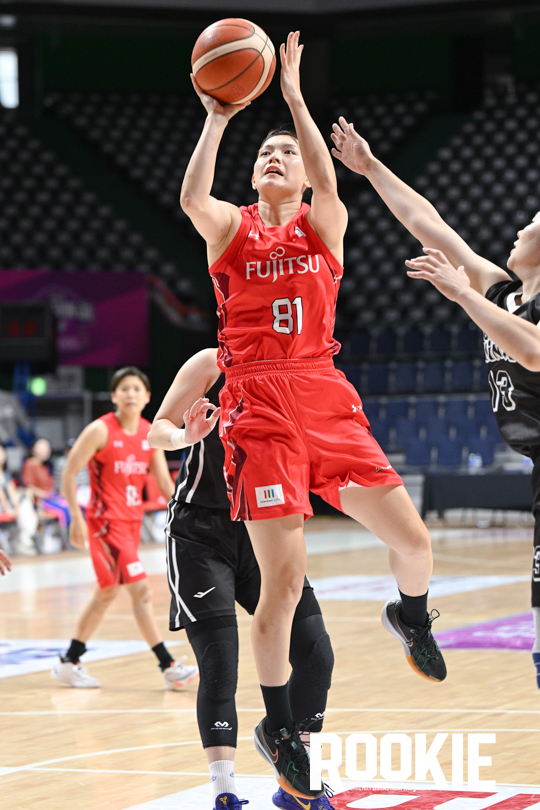 1일 부산 사직실내체육관에서 ‘2025 BNK금융 박신자컵’이 열렸다. 후지쯔 레드웨이브와 용인 삼성생명의 경겨가 열렸다. 후지쯔 키호가 슛을 시도하고 있다.