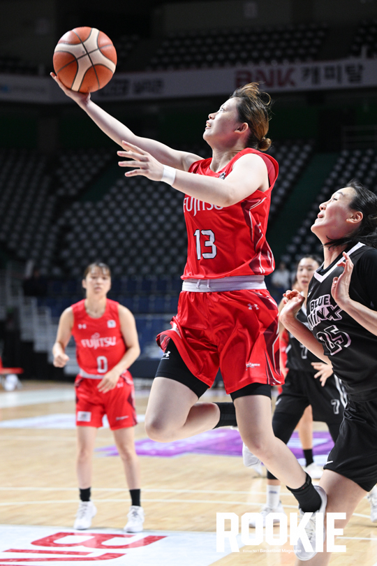 1일 부산 사직실내체육관에서 ‘2025 BNK금융 박신자컵’이 열렸다. 후지쯔 레드웨이브와 용인 삼성생명의 경겨가 열렸다. 후지쯔 사오리가 골밑 공격을 시도하고 있다.