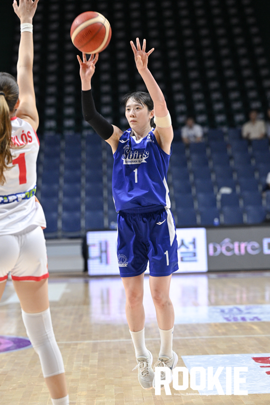 1일 부산 사직실내체육관에서 ‘2025 BNK금융 박신자컵’이 열렸다. 헝가리의 DVTK와 인천 신한은행의 경기가 열렸다. 신한 신이슬이 3점슛을 시도하고 있다.