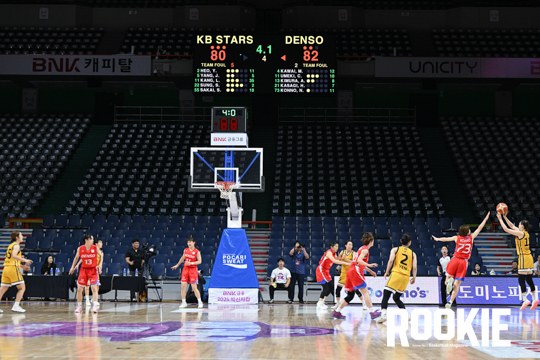 4일 부산 사직실내체육관에서 ‘2025 BNK금융 박신자컵’이 열렸다. 청주 KB스타즈와 덴소 아이리스의 경기가 열렸다. KB스타즈 강이슬이 경기 종료 직전 역점 3점슛을 성공시켰다.