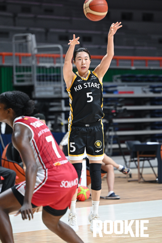 7일 부산 사직실내체육관에서 ‘2025 BNK금융 박신자컵’이 열렸다. 카사데몬트 사라고사와 청주 KB스타즈의 경기가 열렸다. KB스타즈 양지수가 3점슛을 시도하고 있다.