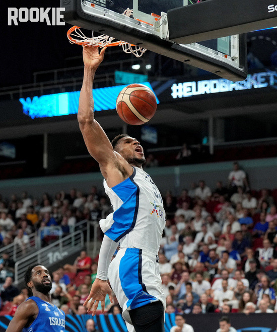 경기 초반부터 아데토쿤보는 예리하게 이스라엘 수비를 공략했다. 트랜지션이든 세트 오펜스 상황이든 그를 제어하는 것은 상당히 어려웠다.