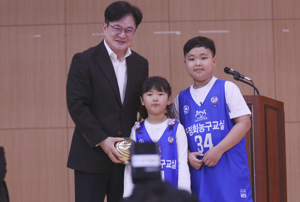 그중 대회 개회 선언에 나선 강하준, 강하은 남매가 이번 개회식에서 가장 큰 박수갈채를 받았다. 은여울초등학교 4학년과 3학년에 재학 중인 강하준, 강하은 남매는 나란히 김포 구정회 농구교실에서 농구를 배우며 김포의 농구 꿈나무로 성장 중이다.
