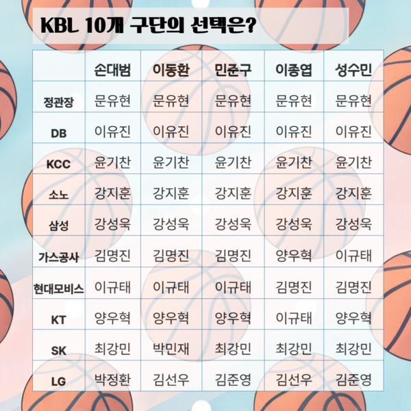 과연 손대범 해설위원과 이동환, 민준구, 이종엽, 성수민 기자의 선택은 어떻게 될지 함께 살펴보자.