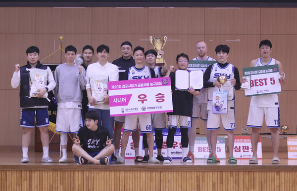 16일 김포생활체육관에서 열린 '제20회 김포시장기 금쌀사랑 전국생활체육농구대회(이하 김포금쌀배)' 40대부 결승에서 3쿼터 이후 주도권을 놓치지 않은 스카이워커스가 헤라클래스를 37-21로 따돌리고 정상에 섰다.