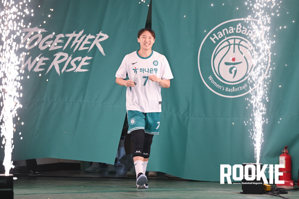 17일 부천체육관에서 ‘BNK 금융 2025~2026 여자프로농구’ 부천 하나은행과 아산 우리은행의 경기가 열렸다. 하나은행 정예림이 홈팬들에게 인사를 하고 있다.