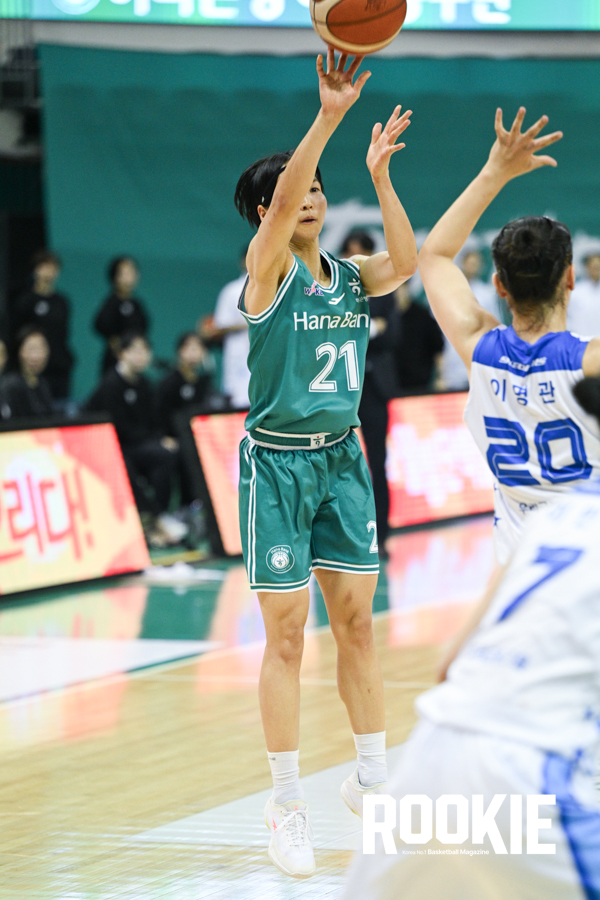 17일 부천체육관에서 ‘BNK 금융 2025~2026 여자프로농구’ 부천 하나은행과 아산 우리은행의 경기가 열렸다. 하나은행 사키가 3점슛을 시도하고 있다.