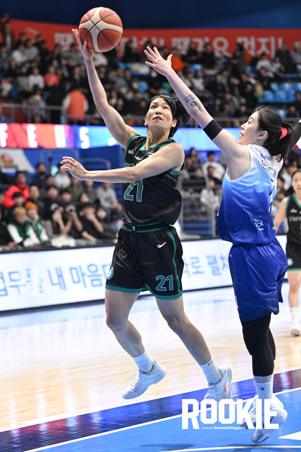 21일 인천에 위치한 도원체육관에서 ‘BNK 금융 2025~2026 여자프로농구’ 인천 신한은행과 부천 하나은행의 경기가 열렸다. 하나은행 사키가 골밑 공격을 시도하고 있다.