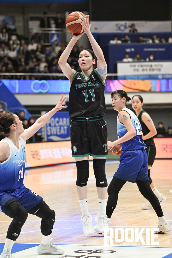 21일 인천에 위치한 도원체육관에서 ‘BNK 금융 2025~2026 여자프로농구’ 인천 신한은행과 부천 하나은행의 경기가 열렸다. 하나은행 양인영이 미들슛을 시도하고 있다.