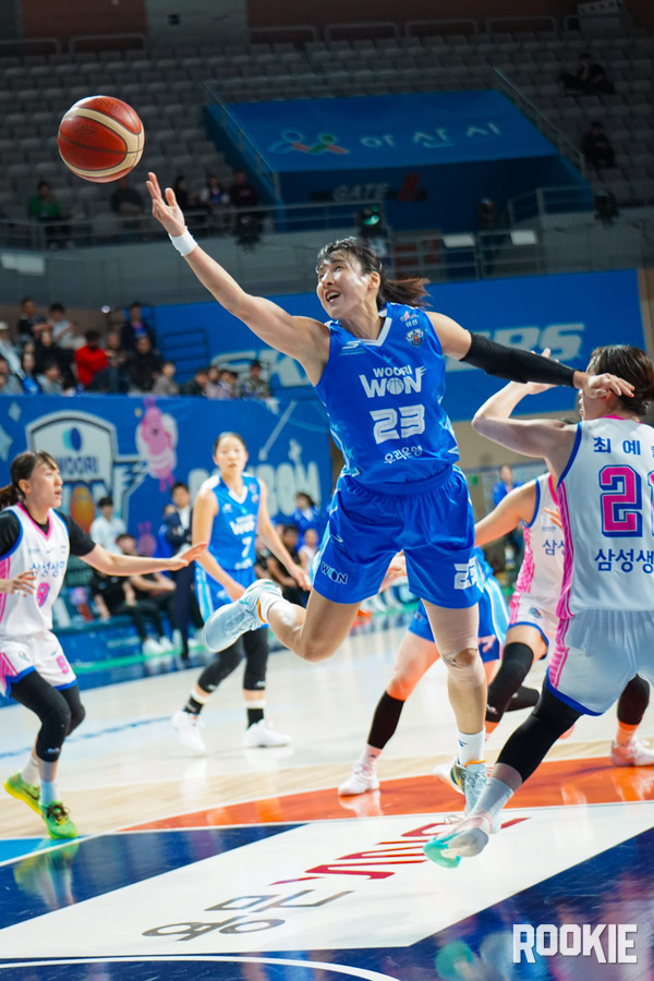 22일 아산에 위치한 이순신체육관에서 'BNK 금융 2025~2026 여자프로농구' 아산 우리은행과 용인 삼성생명의 경기가 열렸다. 우리은행 김단비가 레이업을 하고 있다.