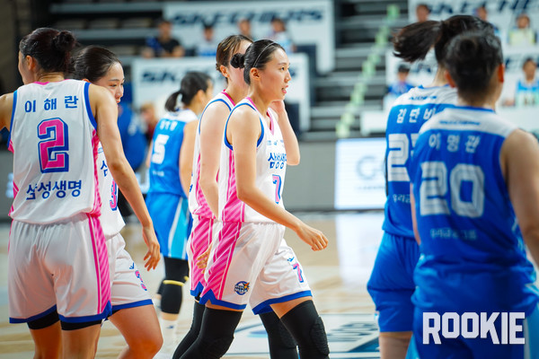 22일 아산에 위치한 이순신체육관에서 'BNK 금융 2025~2026 여자프로농구' 아산 우리은행과 용인 삼성생명의 경기가 열렸다. 삼성생명 강유림이 작전타임을 위해 들어가고 있다.