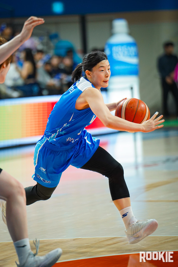 22일 아산에 위치한 이순신체육관에서 'BNK 금융 2025~2026 여자프로농구' 아산 우리은행과 용인 삼성생명의 경기가 열렸다. 우리은행 강계리가 돌파를 시도하고 있다.