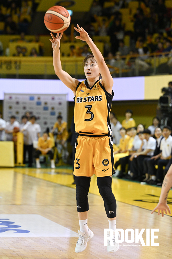 22일 청주 실내체육관에서 ‘BNK 금융 2025~2026 여자프로농구’ 청주 KB스타즈와 부산 BNK썸의 경기가 열렸다. KB스타즈 이채은이 3점슛을 시도하고 있다.