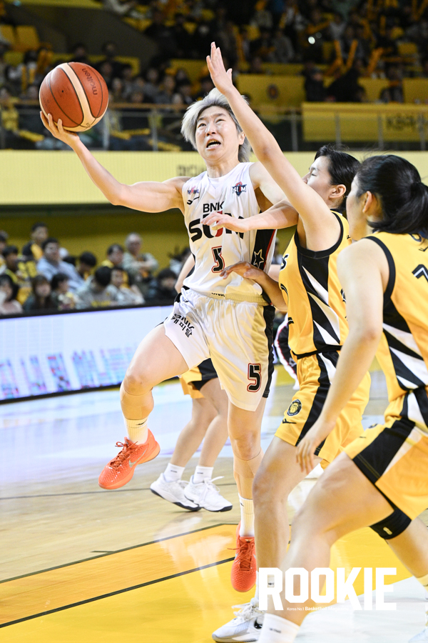22일 청주 실내체육관에서 ‘BNK 금융 2025~2026 여자프로농구’ 청주 KB스타즈와 부산 BNK썸의 경기가 열렸다. BNK썸 안혜지가 골밑 공격을 시도하고 있다.