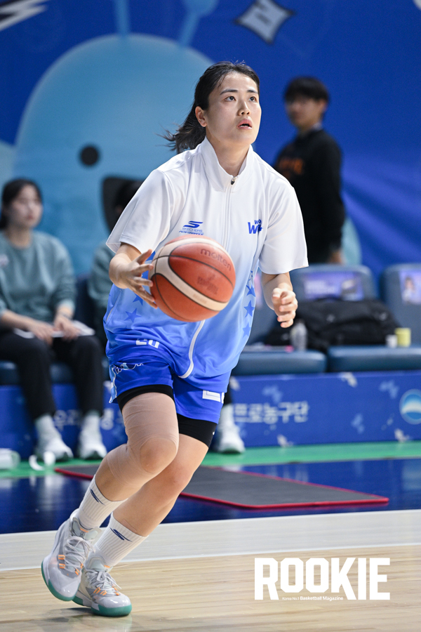 23일 아산 이순신체육관에서 ‘BNK 금융 2025~2026 여자프로농구’ 아산 우리은행과 인천 신한은행의 경기가 열렸다. 우리은행 이명관이 경기에 앞서 몸을 풀고 있다.