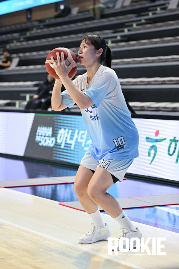 23일 아산 이순신체육관에서 ‘BNK 금융 2025~2026 여자프로농구’ 아산 우리은행과 인천 신한은행의 경기가 열렸다. 신한은행 이두나가 경기에 앞서 몸을 풀고 있다.