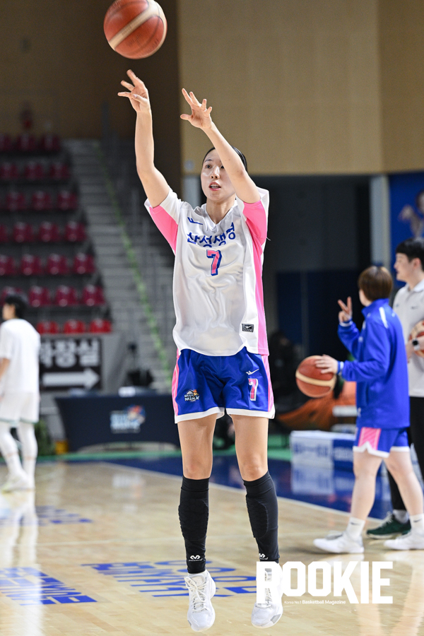 24일 용인 실내체육관에서 ‘BNK 금융 2025~2026 여자프로농구’ 용인 삼성생명과 부천 하나은행의 경기가 열렸다. 삼성생명 강유림이 슛으로 몸을 풀고 있다.